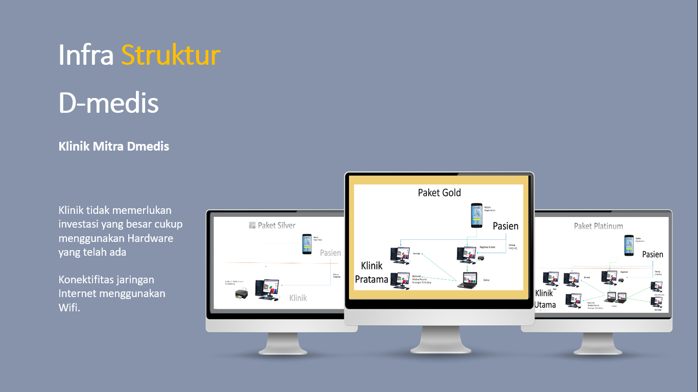 Cakupan Aplikasi meliputi Pelayanan Klinik, Manajemen Klinik dilengkapi sesuai peratuaran yang ada, tanpa melakukan Investasi yang besar dan selalu ter-update baik dari segi teknologi maupun peraturan yang berlaku..